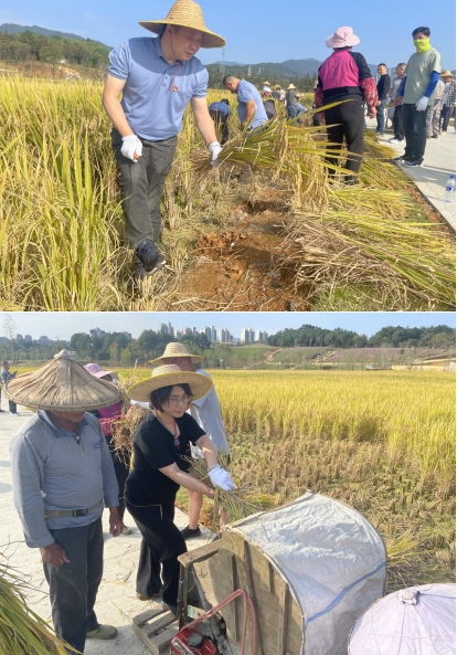秋意漸寒,稻谷飄香。為深入貫徹習(xí)近平總書記關(guān)于實(shí)施鄉(xiāng)村振興戰(zhàn)略和糧食安全的重要論述,以學(xué)促干,推動(dòng)學(xué)習(xí)貫徹習(xí)近平新時(shí)代中國(guó)特色社會(huì)主義思想主題教育見(jiàn)行見(jiàn)效,2023年117上午,市政集團(tuán)黨支部組織全體黨員干部龍州濕地項(xiàng)目開(kāi)展“傳承蘇區(qū)好作風(fēng) 四下基層促發(fā)展”主題黨日活動(dòng),全面助力稻谷收割工作