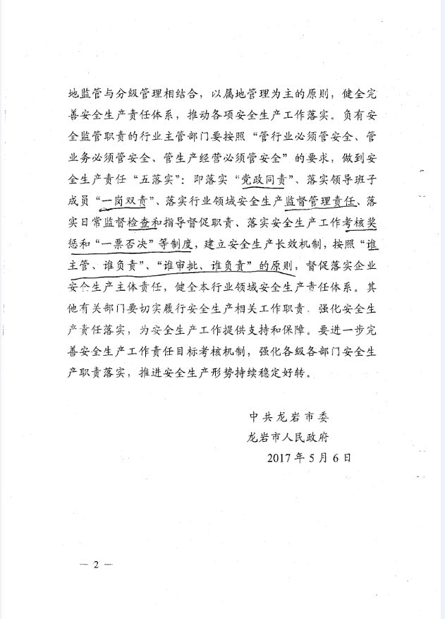 龍巖市安全生產(chǎn)責任清單及安全生產(chǎn)巡查工作辦法(巖委【2017】45)