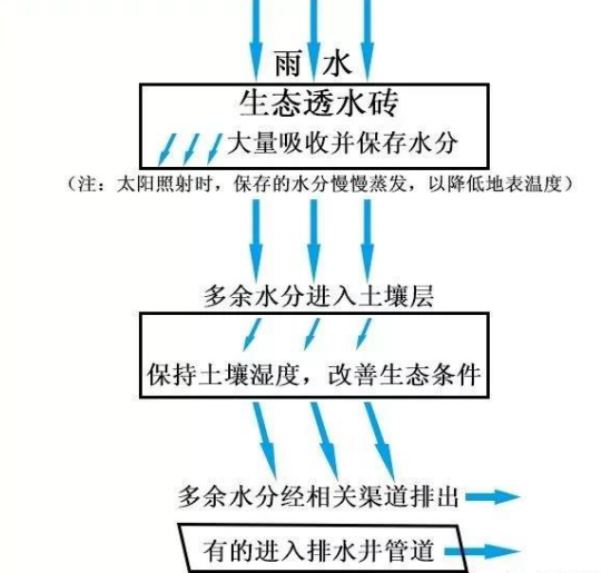 什么是海綿城市?簡言之,就是城市像海綿一樣有彈性,能吸水、蓄水、排水,實現(xiàn)水循環(huán)利用、有效防內(nèi)澇。鋪設生態(tài)透水磚,是除雨污分流改造外,我市海綿城市建設的一個重點和亮點。鋪有生態(tài)透水磚的人行道,看上去好像與鋪設普通磚的人行道沒什么兩樣,但仔細一看就會發(fā)現(xiàn)有所不同,生態(tài)透水磚表面布滿小孔,而普通磚表面比較光滑。這是因為生態(tài)透水磚以礦渣廢料、石屑、普通硅酸鹽水泥為主要原料,設計有一定孔隙率,經(jīng)高頻振動加壓而成,普通磚則主要用石粉廢渣、低標號水泥等制成下雨時,生態(tài)透水磚能大量吸收并保存水分,達到飽和狀態(tài)后保存不了的多余水分則透過磚體進入土壤層,從土壤層出來后的多余水分最后經(jīng)相關渠道排出,有的通過排水井管道排出。而普通磚只能吸收少量水分,大部分水經(jīng)由地表流掉,易導致路面積水。