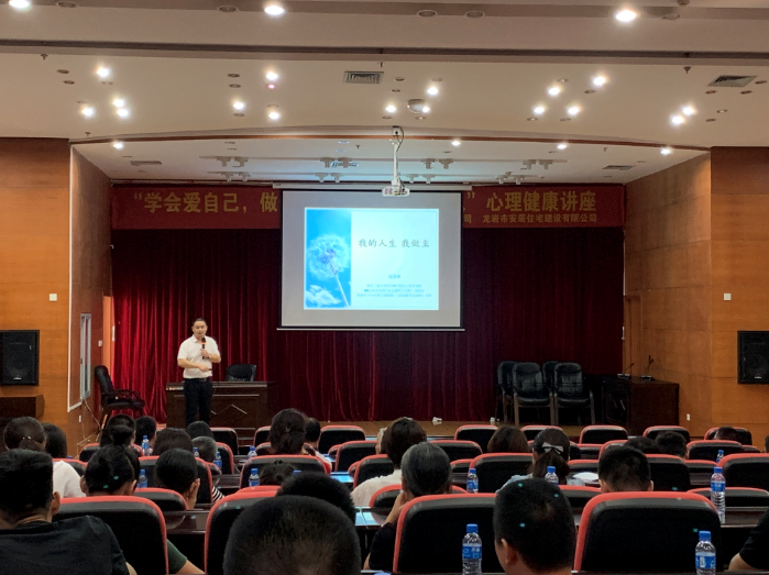 為提高全體員工心理素質(zhì),不斷提升心理健康水平,2019年9月10下午,市城公司和安居公司在建設(shè)大廈四樓第五會(huì)議室共同舉辦“學(xué)會(huì)愛自己,做個(gè)內(nèi)心強(qiáng)大而溫暖的人”心理健康知識(shí)講座,特邀請(qǐng)龍巖市第三醫(yī)院康復(fù)科劉主任(國家二級(jí)心理咨詢師)前來授課。