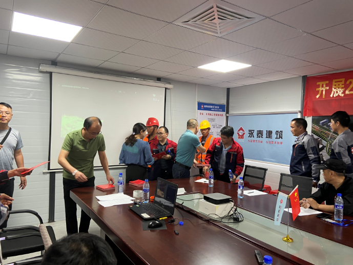 現(xiàn)場,副總經(jīng)理俞桃蓮、修海金及總經(jīng)理助理章志強(qiáng)向項目部人員及工人現(xiàn)場分發(fā)安全知識手冊、安全知識圖冊等宣傳資料。