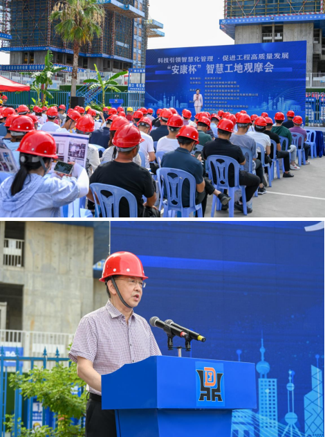 為推動我市房屋市政工程智慧工地建設(shè),促進建筑施工企業(yè)質(zhì)量安全管理標(biāo)準(zhǔn)化、信息化、智能化發(fā)展,7月20號上午,由市住建局和城發(fā)集團主辦,市政集團及福建九鼎集團共同承辦的全市智慧工地觀摩會在龍欣小區(qū)安置房二期Ⅱ標(biāo)段項目舉辦,市住建局二級調(diào)研員王健蒞臨觀摩會致辭,市住建局、城發(fā)集團及所屬企業(yè)相關(guān)工程技術(shù)人員約100人參加。觀摩會還吸引了來自龍巖市建筑業(yè)協(xié)會、龍巖市工程建設(shè)質(zhì)量安全管理協(xié)會、福建船政交通職業(yè)學(xué)院等有關(guān)專家到場指導(dǎo)。
